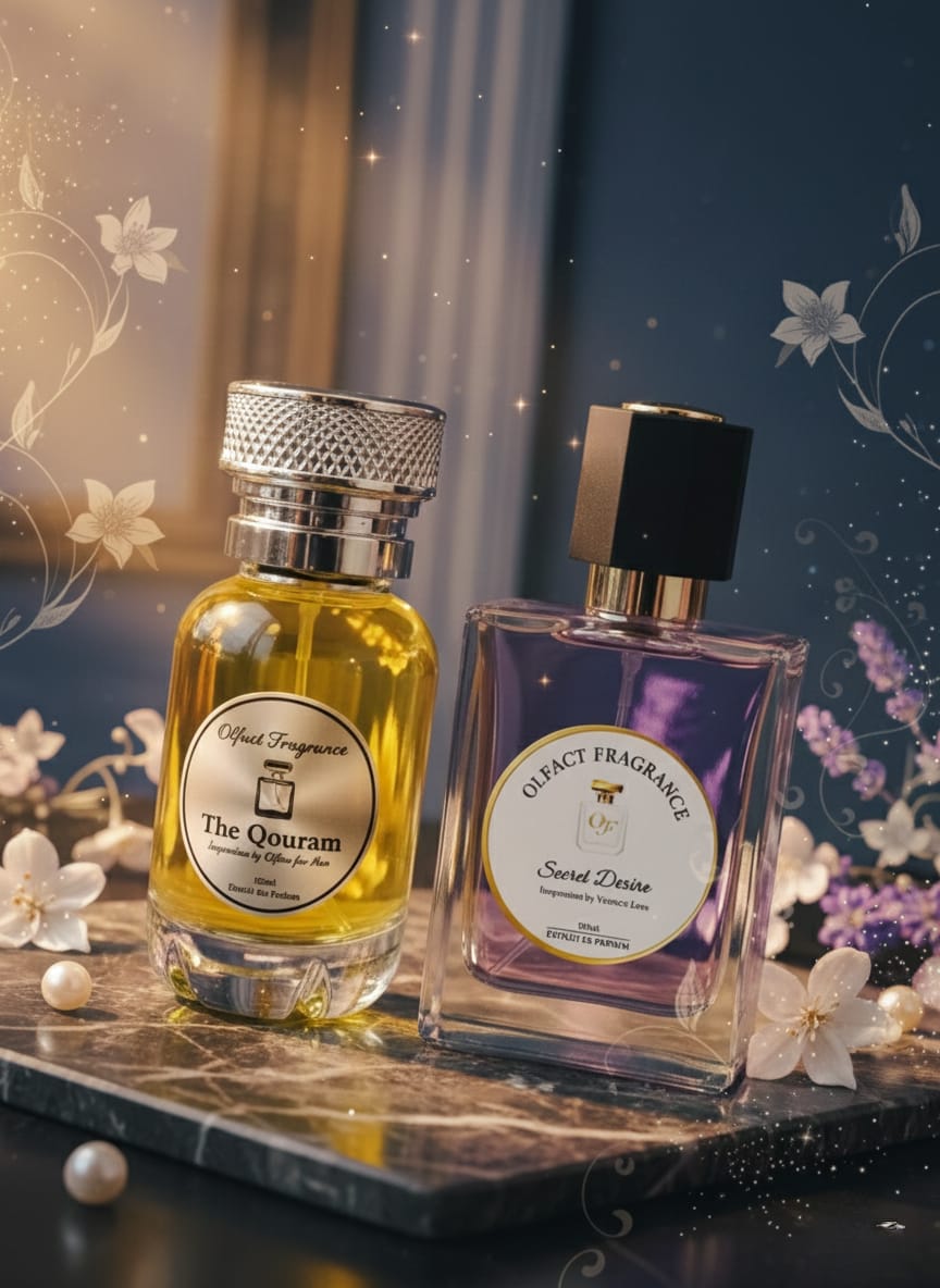 A powerful and passionate union. This couple’s set pairs the sophisticated strength of The Qouram with the alluring mystery of Secret Desire. A bold statement of a modern and intense connection.
